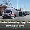 Kayseri'de otomobille çarpışan öğrenci servisi yan yattı