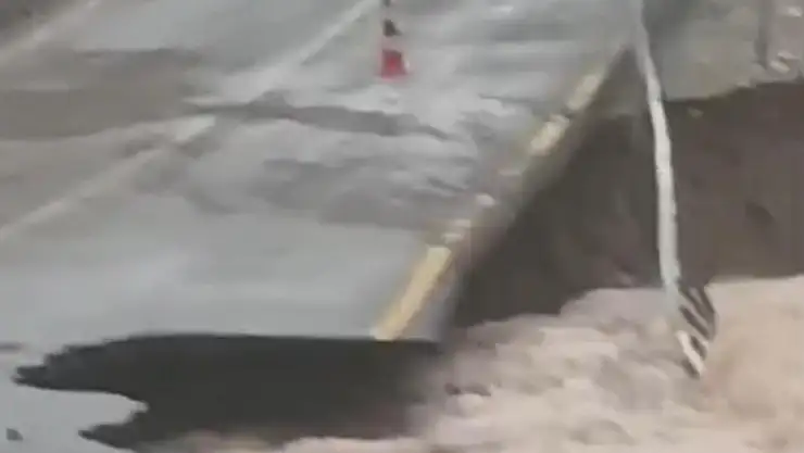 Kayseri'nin Yahyalı ilçesinde etkili olan sağanak yağış sele neden olurken, bölgede bazı mahalleler sel suları altında kaldı. Sel nedeniyle ilçede bulunan Kapuzbaşı Şelalesi'ne giden yolun bir kısmı çökerken, o anlar cep telefonu kamerasına yansıdı.