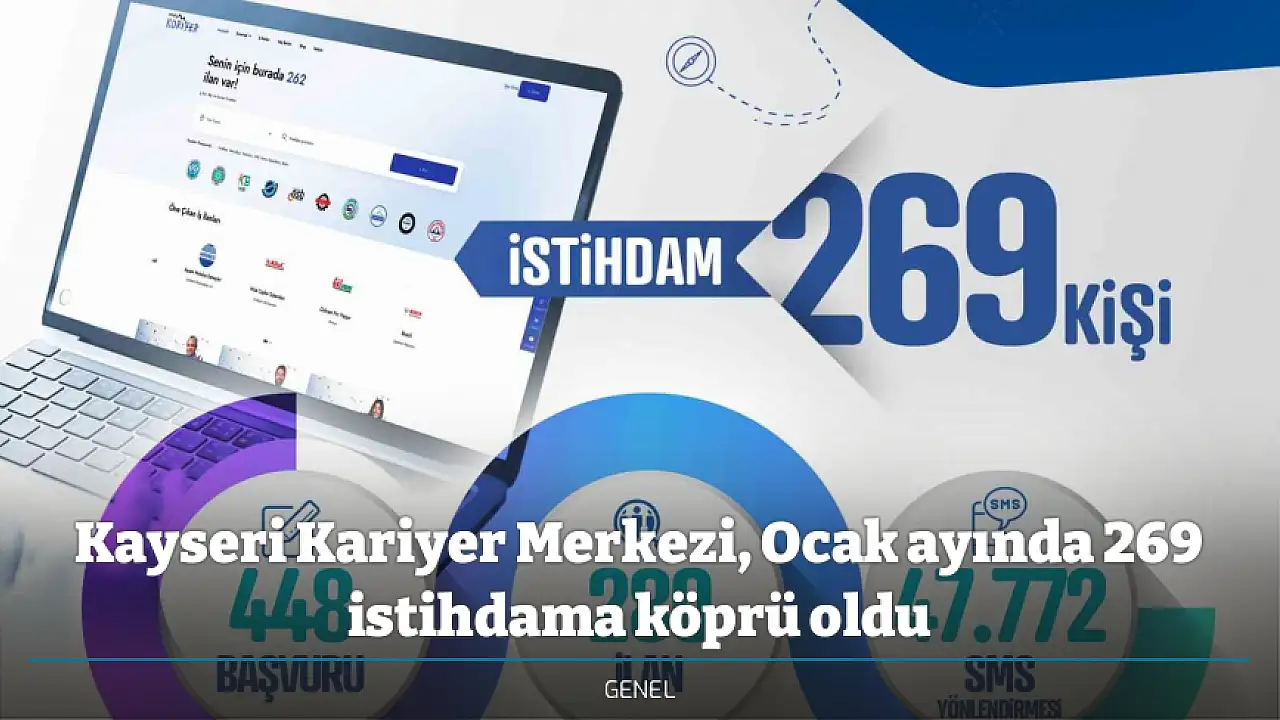 Buna göre Kayseri Kariyer Merkezi, 2026 yılı Ocak ayında toplam 269 kişinin istihdamına köprü olurken, 47 bin 772 SMS’i de yönlendirdi. Söz konusu 1 aylık süreçte başvuru sayısı 448, ilan sayısı 280 ve talep edilen işçi sayısı ise 947 olarak gerçekleşti.