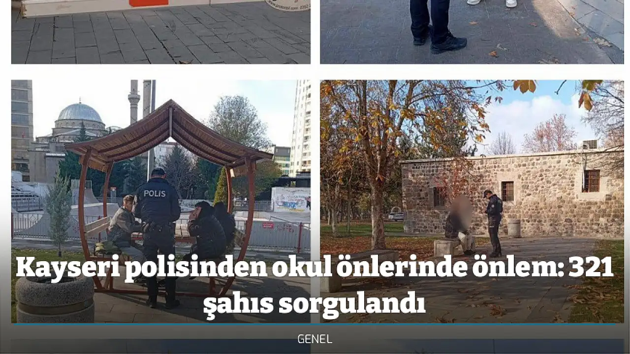 Kayseri İl Emniyet Müdürlüğü Asayiş Şube Müdürlüğü Devriye Ekipler Amirliği ekipleri tarafından Melikgazi, Kocasinan ve Talas ilçelerinde, okul giriş ve çıkış saatlerinde öğrencilerin güvenliğini sağlamak, suç ve suç unsurlarına karşı caydırıcılık oluşturmak amacıyla çalışma yapıldı. Ekipler tarafından okul önleri ve çevrelerinde okulla ilgisi olmayan şahıslara yönelik gerçekleştirilen uygulamalarda, 321 şahıs ve 43 araç sorgulandı.