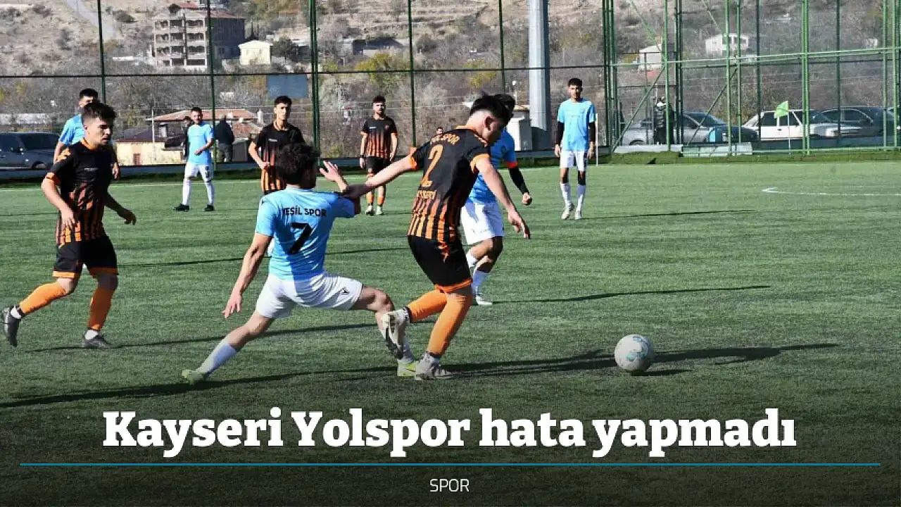 Kayseri 1. Amatör Küme A Grubu lideri Kayseri Yolspor ligin 10. haftasında oynadığı maçta Yeşilspor'u ikinci yarıda bulduğu gollerle mağlup ederek liderliğini sürdürdü.