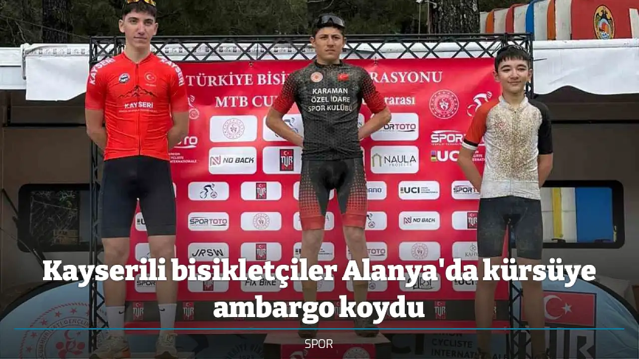 Alanya'da düzenlenen Türkiye Şampiyonası Ulusal 1. Etap Dağ Bisikleti Yarışında Kayserimi sporcular 1 altın, 2 gümüş olmak üzere 3 madalya kazandı.