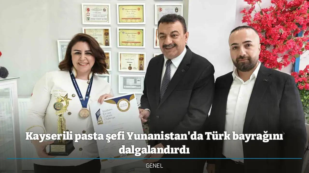 Kayseri'de 12 yıldır pasta şefliği yapan Sema Bayram, Yunanistan'da düzenlenen Southern Europa Culinary Challenge 2026 yarışmasında yaptığı pasta ile altın madalya kazanarak büyük bir başarıya imza attı.