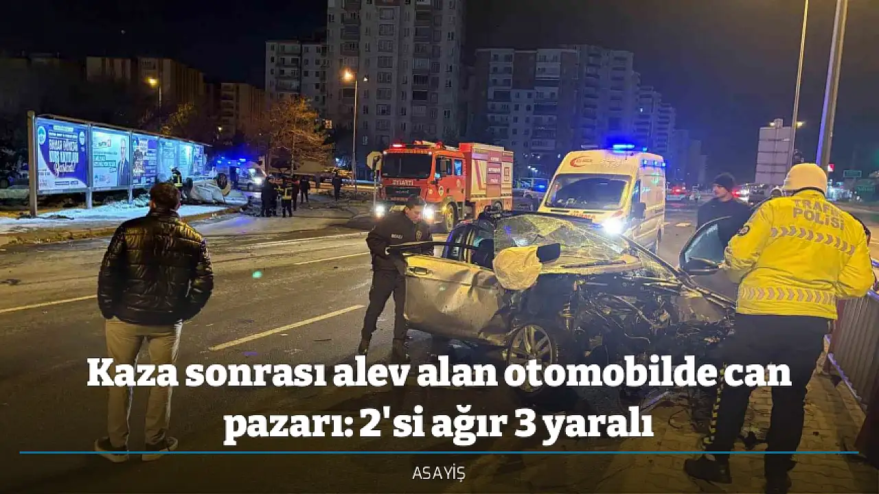 Kayseri'nin Melikgazi ilçesinde kavşakta çarpışan otomobillerden biri takla atarak alev alırken, diğerinin motoru yola fırladı. Ekipler bir yandan otomobilde çıkan yangına müdahale ederken, bir yandan da otomobildeki yaralıları çıkardı. Ortalığın savaş alanına döndüğü kazada 2'si ağır 3 kişi yaralandı.