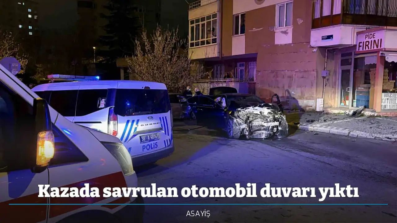 Edinilen bilgiye göre, kaza, ilçeye bağlı Esenyurt Mahallesi Gediz Caddesi ile Güneş Sokak kesişiminde meydana geldi. Sürücüleri öğrenilemeyen 38 SZ 903 plakalı otomobile ile 38 ALT 277 plakalı otomobil çarpıştı. Çarpışmanın etkisiyle savrulan 38 SZ 903 plakalı otomobil bir binanın bahçe duvarına çarparak yıktı. İhbar üzerine bölgeye polis, sağlık ekipleri sevk edildi. Polis ekipleri çevrede güvenlik önlemi alırken, itfaiye ekipleri de duvara çarpan otomobilde sıkışan sürücüyü araçtan çıkardı. Ağır yaralı sürücüyü ile diğer otomobildeki 4 yaralı ilk müdahalenin ardından ambulansla hastaneye kaldırdı.