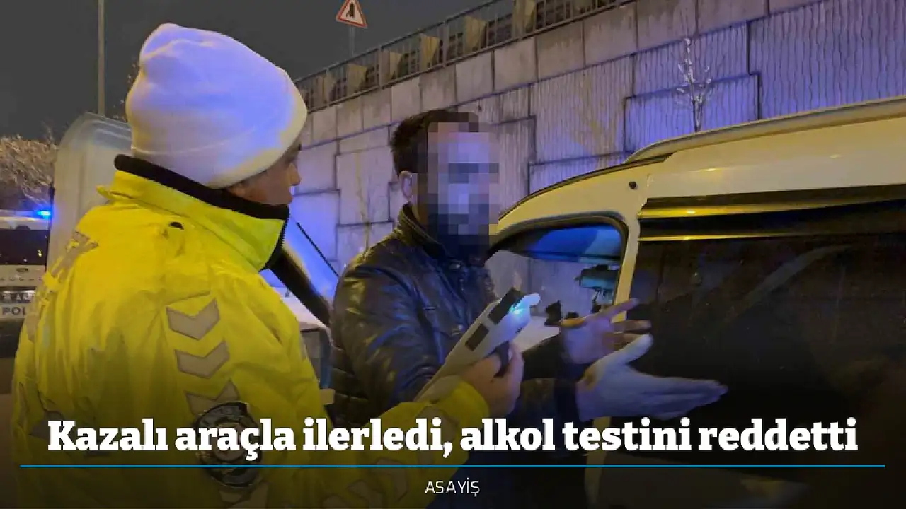 Kayseri'nin Melikgazi ilçesinde kaza yaptığı halde trafikte ilerlediği ihbarı yapılan sürücü, polis ekipleri tarafından durduruldu. Alkollü olmadığını iddia eden sürücü alkolmetreyi üflemeyi reddetti.