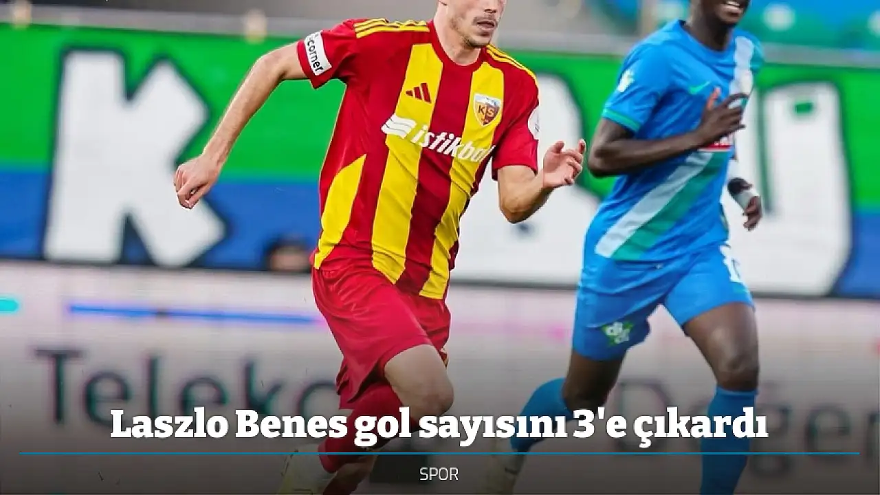Süper Lig ekiplerinden Kayserispor'un Slovak oyuncusu Laszlo Benes, Çaykur Rizespor maçında kaydettiği golle takımına galibiyeti getirirken gol sayısını da 3'e çıkardı.
