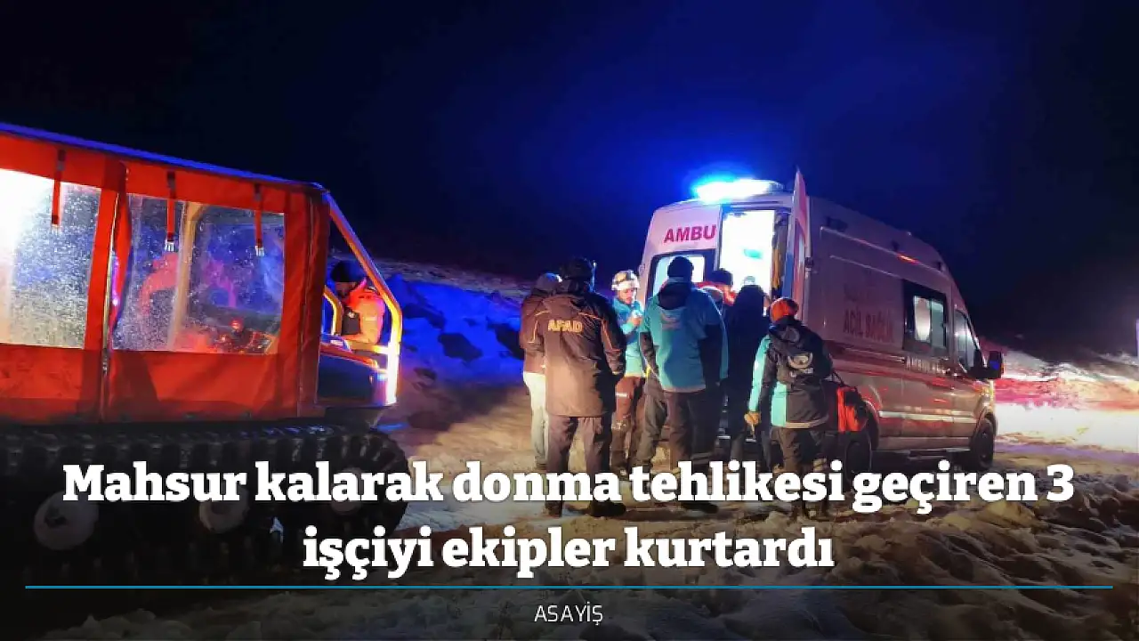 Mahsur kalarak donma tehlikesi geçiren 3 işçiyi ekipler kurtardı