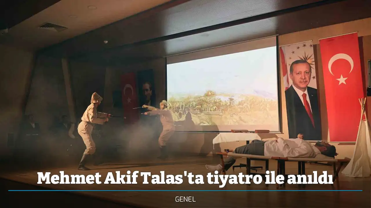 Talas Belediyesi Meclis Salonu’nda ’Tek Perde Üç Tablolu Milli Dram’ olarak hazırlanan eser, Mehmet Akif’in yalnızca dizeleriyle değil, hayatıyla da bu millete yol gösteren bir dava adamı olduğunu gözler önüne serdi. Oyun boyunca inanç, vatan sevgisi, fedakârlık ve bağımsızlık ruhu, salonu dolduran öğrenci, öğretmen ve idarecilerin yüreğine nakış nakış işlendi. Atabey Barış, Özgecan E. Eraydın, Kutay Neşeli, Nazlıcan Kol, Süleyman Özyürek ve Hacı Murat Yiğitsoy’un rol aldığı oyun, Kara Karayev ve Grup Şantiye müzikleriyle izleyicilere hem hüzün hem de gurur dolu bir yolculuk yaşattı.