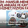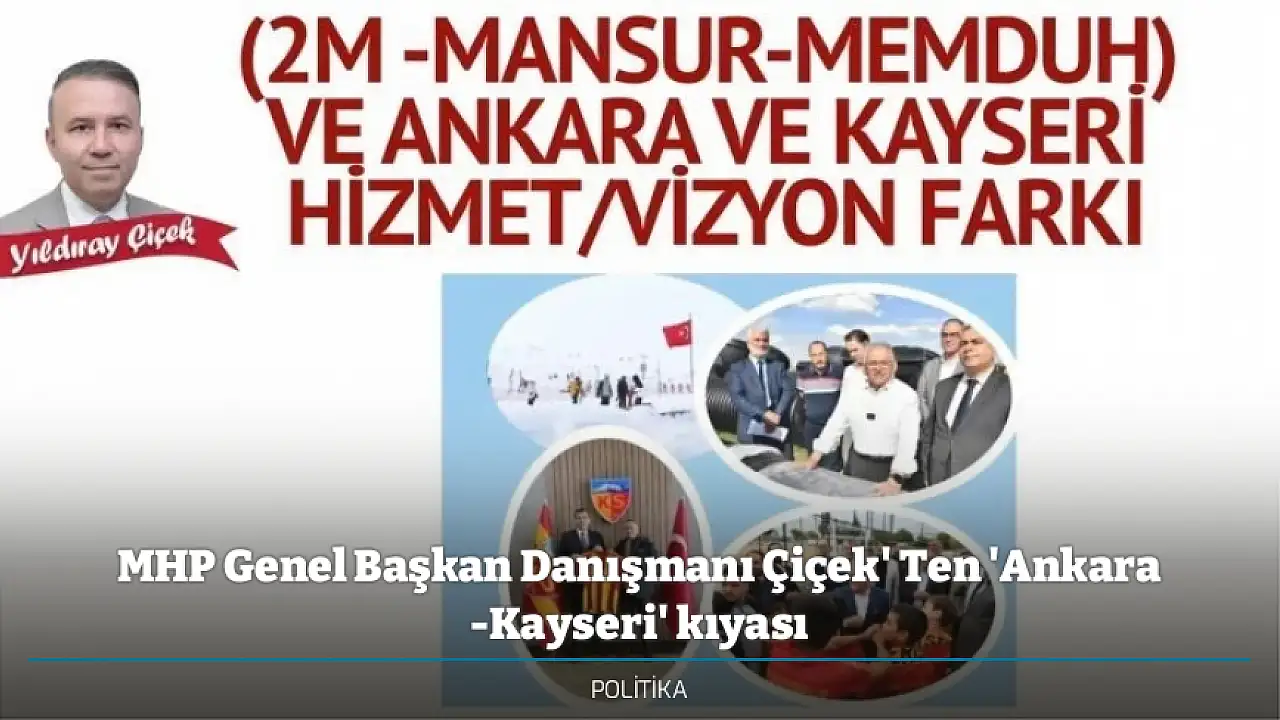 Milliyetçi Hareket Partisi (MHP) Genel Başkan Danışmanı Yıldıray Çiçek sosyal medya hesabı üzerinden yaptığı '(2M-Mansur-Memduh) ve Ankara ve Kayseri Hizmet/Vizyon Farkı' başlıklı yazı ile iki şehir arasındaki vizyonu kıyasladı.