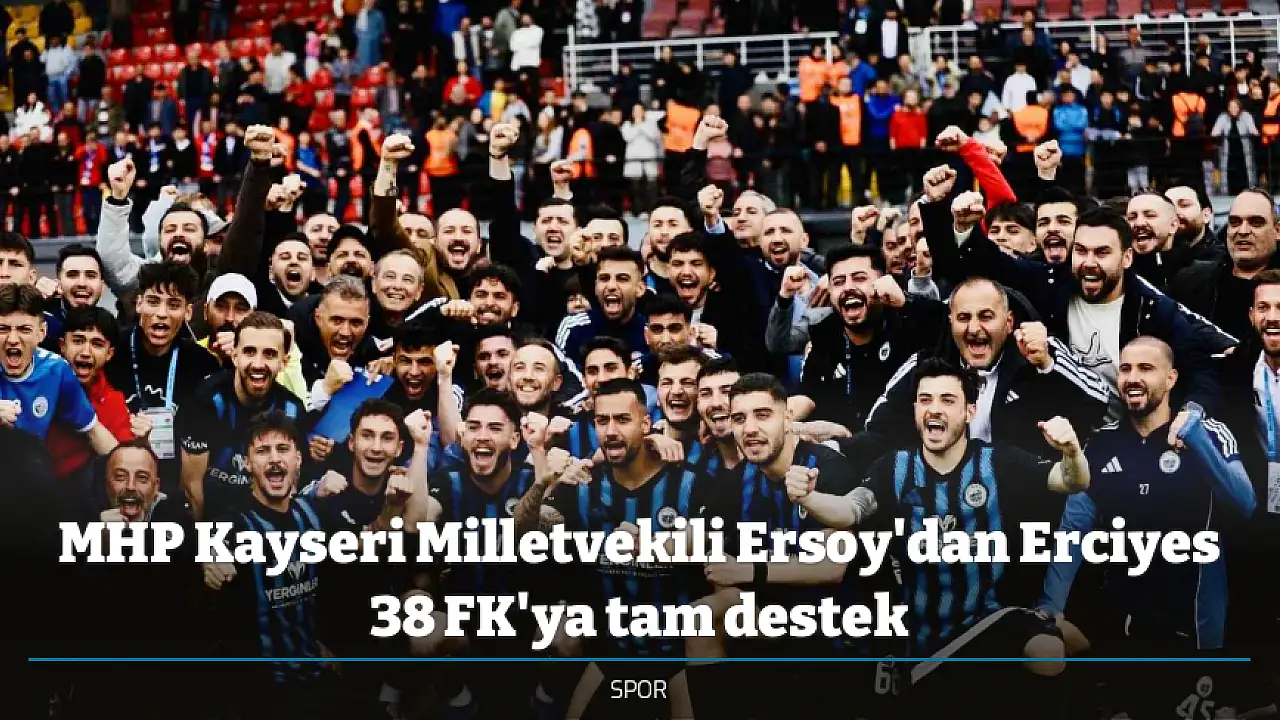 Türkiye 3. Lig 2. Grup’u ikinci sırada tamamlayarak Play Off oynamaya hak kazanan Erciyes 38 FK’ya Milliyetçi Hareket Partisi (MHP) Kayseri Milletvekili Baki Ersoy, tam destek vererek şampiyonluğun Kayseri’ye geleceğine inandığını söyledi. MHP Kayseri Milletvekili Baki Ersoy açıklamasında; "Hayırlı olsun, inşallah şampiyon da olacağız, inanıyoruz. İnandığımız için buradayız zaten. Destek veren herkese çok teşekkür ediyorum. Başta teknik kadro ve futbolcu kardeşlerim olmak üzere hepsini tebrik ediyorum. Ayrıca şehri ayağa kaldıran duyarlı basın mensuplarımıza da teşekkür ediyorum. İnşallah darısı Kayserispor’un başına" dedi.