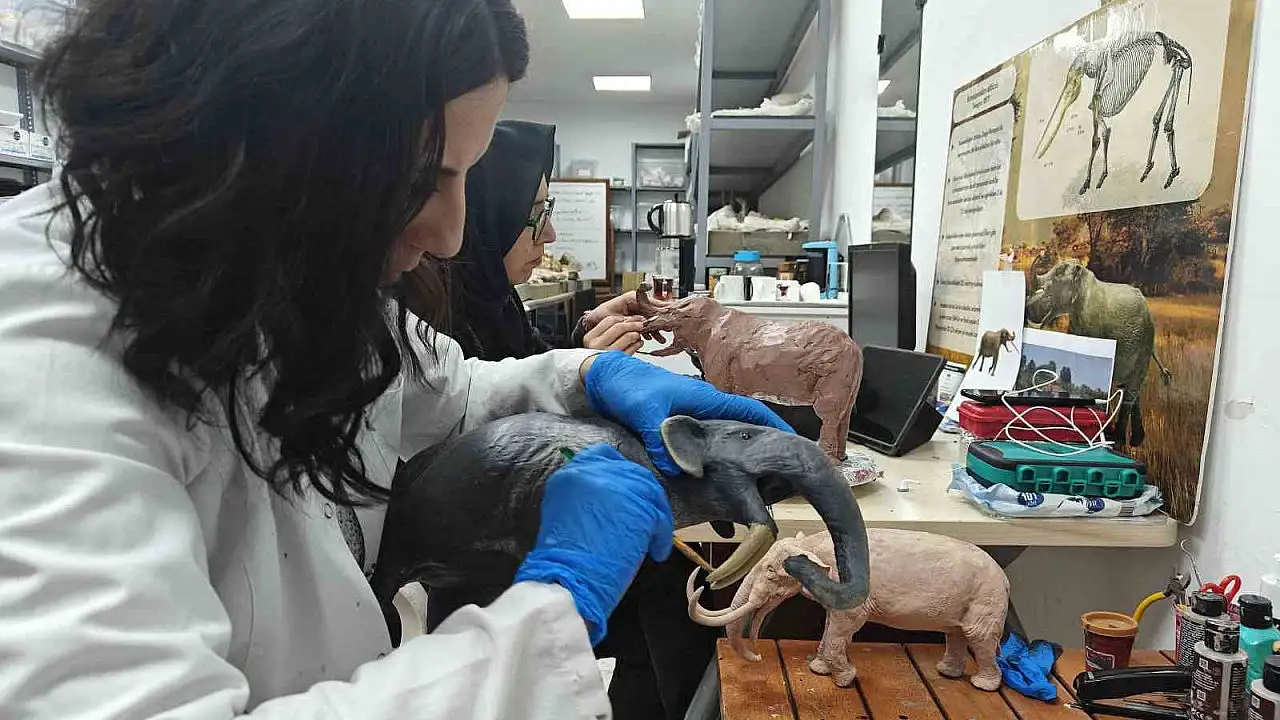 Kayseri’nin Kocasinan ilçesine bağlı Taşhan bölgesinde 7,7 milyon yıllık tarihe ışık tutan çalışmalarda çıkan fosiller, anatomik ölçeklerinde minyatür hale getirilerek, ziyaretçiler için hazırlanıyor.