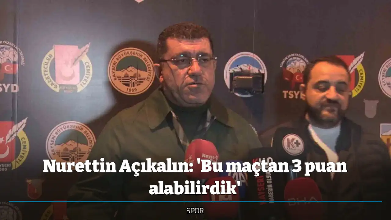 Kayserispor Başkanı Nurettin Açıkalın, sahalarında ağırladıkları Alanyaspor maçı sonrası yaptığı açıklamada, Bu maçtan 3 puan alabilirdik. Oyuncularımızın göstermiş olduğu oyunu ve mücadeleyi tebrik ediyorum dedi.