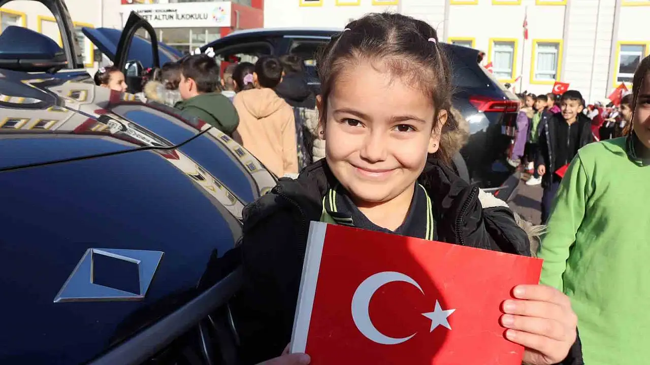 Kayseri'de ilkokul öğrencileri, 'Yerli Malı' Haftası olarak bilinen Tutum, Yatırım ve Türk Malları Haftası dolayısıyla okullarına gelen yerli otomobil Togg'u inceledi.