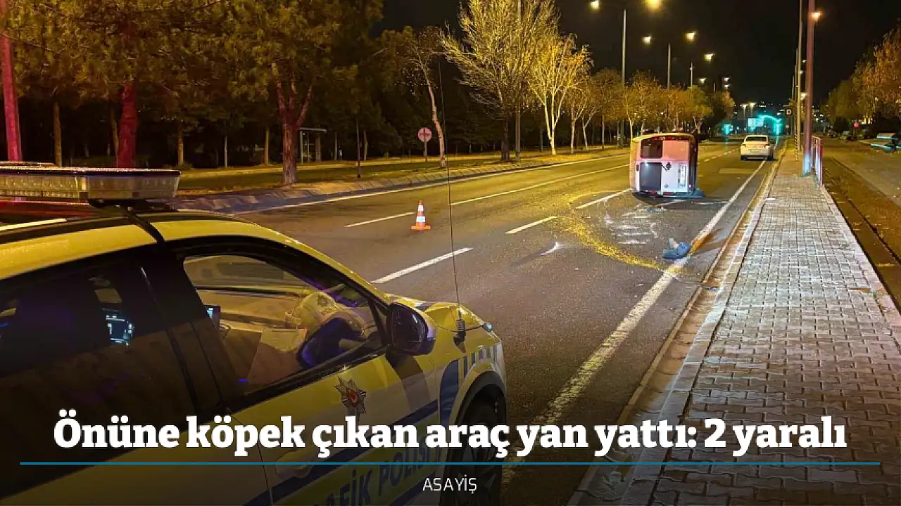 Kayseri'nin Melikgazi ilçesinde önüne köpek çıkan hafif ticari araç sürücüsünün direksiyon hakimiyetini kaybetmesi sonucu yan yatarken, kazada 2 kişi yaralandı.