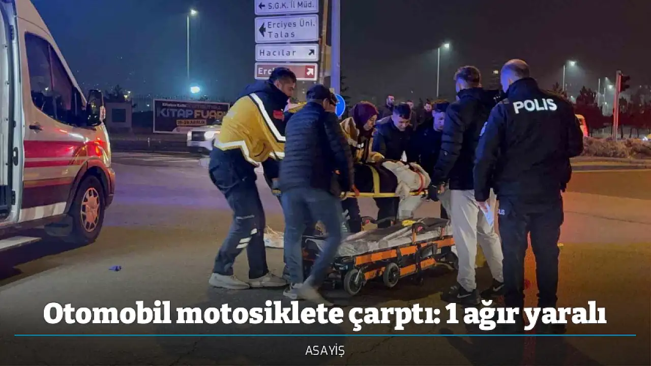 Edinilen bilgiye göre, ilçeye bağlı Talas Bulvarı ve Kartal Bulvarı’nın kesişimin de bulunan kavşakta meydana gelen trafik kazasında, M.U. yönetimindeki 34 ACH 528 plakalı otomobille S.E. idaresindeki 40 ACM 823 plakalı motosiklet çarpıştı. Kazada motosiklette yolcu olarak bulunan L.Ö. ağır yaralandı. İhbar üzerine bölgeye polis ve sağlık ekibi sevk edildi Polis ekipleri yolda güvenlik önlemi alarak, trafiğin akışını sağlarken, sağlık ekipleri de yaptıkları ilk müdahalenin ardından L.Ö.’yü ambulansla hastaneye kaldırdı. Çalışmaların ardından motosiklet çekiciyle kaldırıldı.