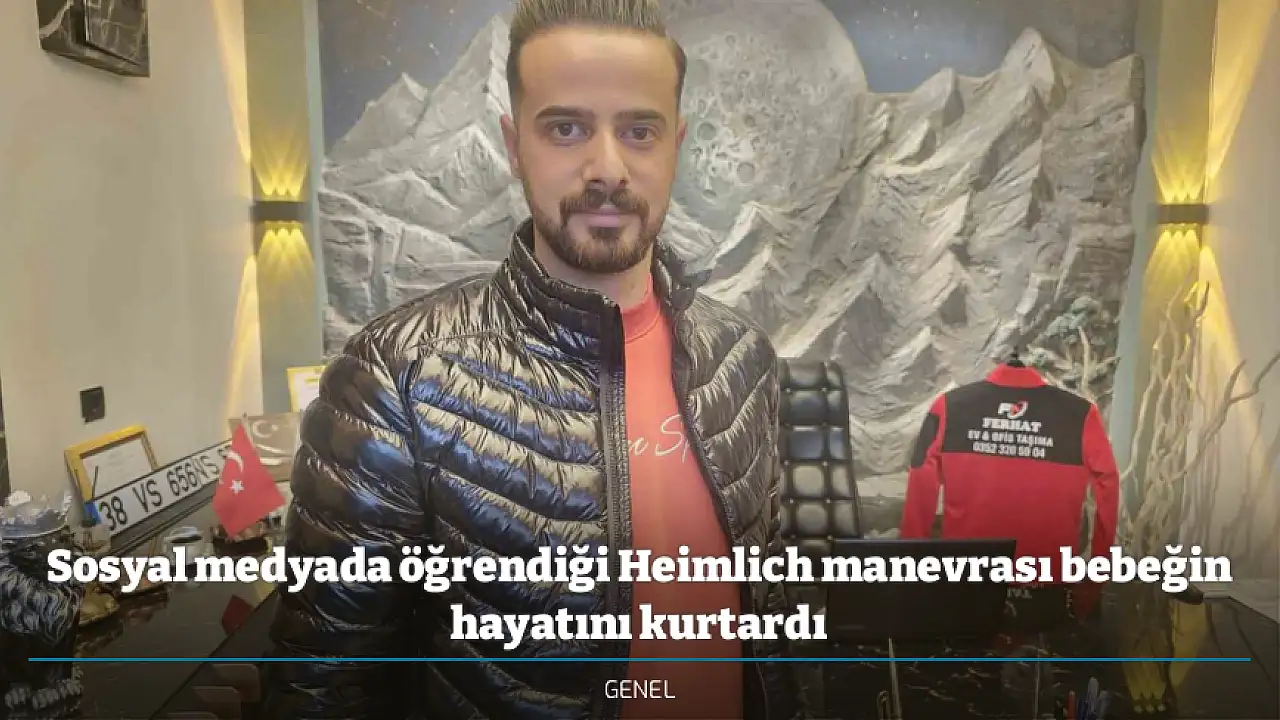 Kayseri'de nakliye işi yapan esnaf boğazına şeker kaçan bebeği sosyal medyadan öğrendiği Heimlich manevrasıyla kurtardı.