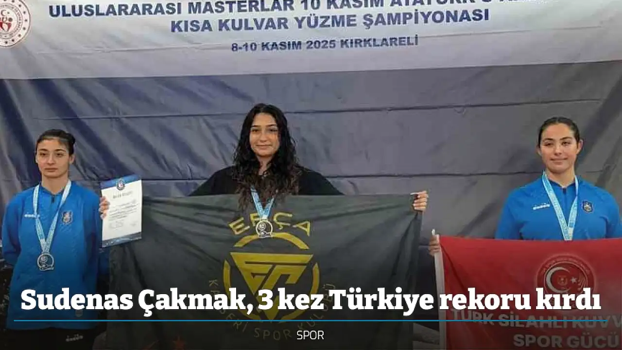 Kayserili sporcu Sudenas Çakmak, Kırıkkale'de düzenlenen Uluslararası Masterlar 10 Kasım Atatürk'ü Anma Kısa Kulvar Yüzme Şampiyonası'nda 3 kez Türkiye rekoru, 2 kez Türkiye Şampiyonu olarak büyük başarı elde etti.
