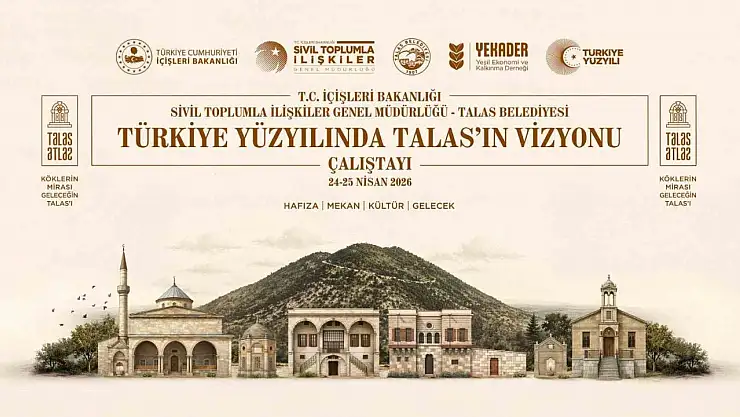 Talas Belediyesi, ilçenin geleceğini bilimsel veriler ve ortak akıl çerçevesinde şekillendirmek amacıyla önemli bir organizasyona daha imza atıyor. İçişleri Bakanlığı Sivil Toplumla İlişkiler Genel Müdürlüğü'nün destekleriyle düzenlenen 'Türkiye Yüzyılında Talas'ın Vizyonu' çalıştayı, 24-25 Nisan 2026 tarihlerinde Kayseri Üniversitesi (KAYÜ) 15 Temmuz Yerleşkesi Kongre ve Kültür Merkezi'nde gerçekleştirilecek.