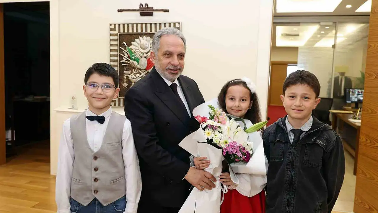 Talas Belediye Başkanı Mustafa Yalçın, 23 Nisan Ulusal Egemenlik ve Çocuk Bayramı kapsamında Cemil Baba İlkokulu 4. sınıf öğrencileri Umut Mert Kahraman, Muhammed Ömer Yüksel ve Merve Nisa Özdemir'i makamında ağırladı. Ziyarete İlçe Milli Eğitim Şube Müdürü Ahmet Çakır, Okul Müdürü Sami Aydın ile öğretmenler de eşlik etti.