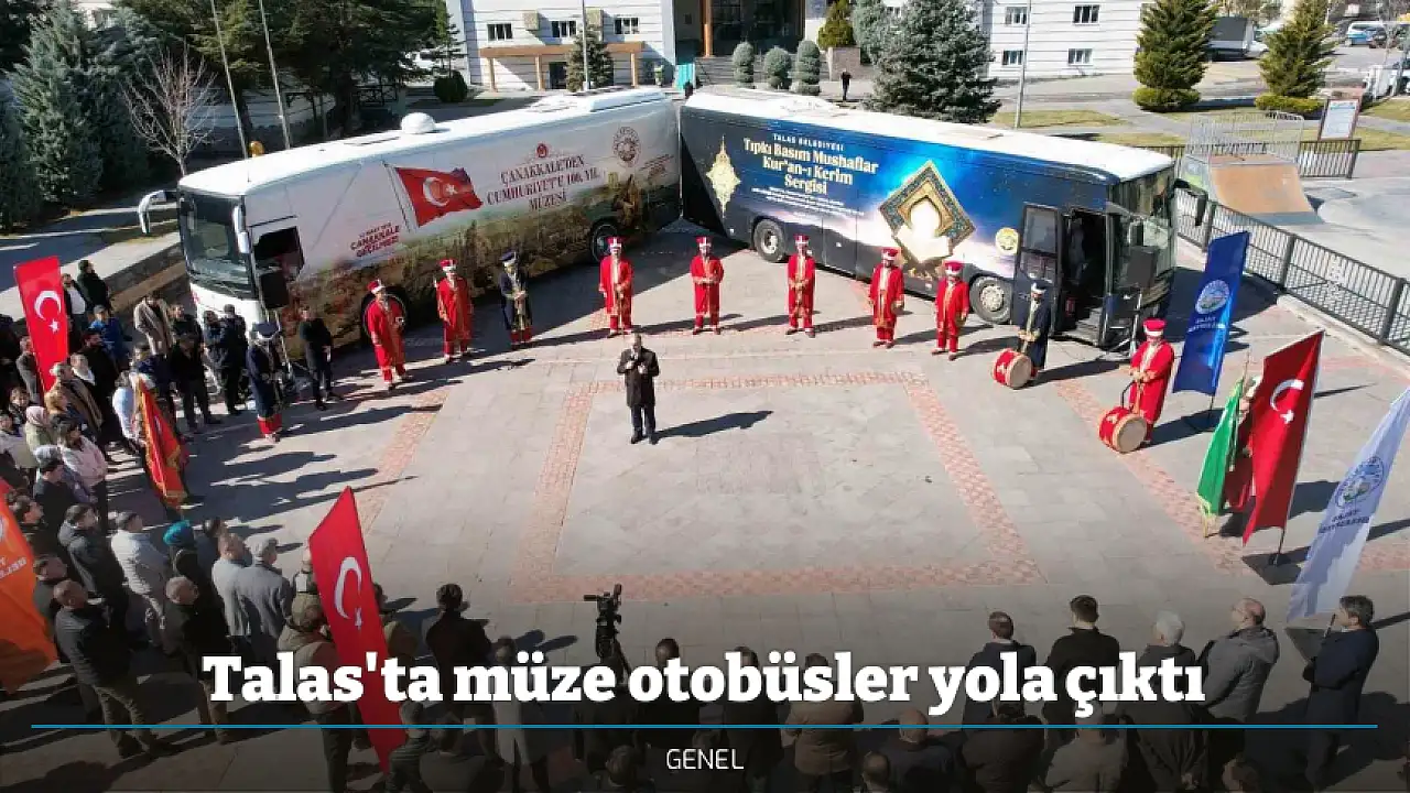 Talas Belediyesi, tarihin şanlı yolculuğunu ve medeniyetimizin nadide mirasını bu kez müze otobüslerle vatandaşla buluşturuyor. Çanakkale'den Cumhuriyet'e 100. Yıl Gezici Müzesi ile Tıpkı Basım Mushaflar Kur'an-ı Kerim Gezici Müzesi, düzenlenen törenle dualar eşliğinde yola çıktı.