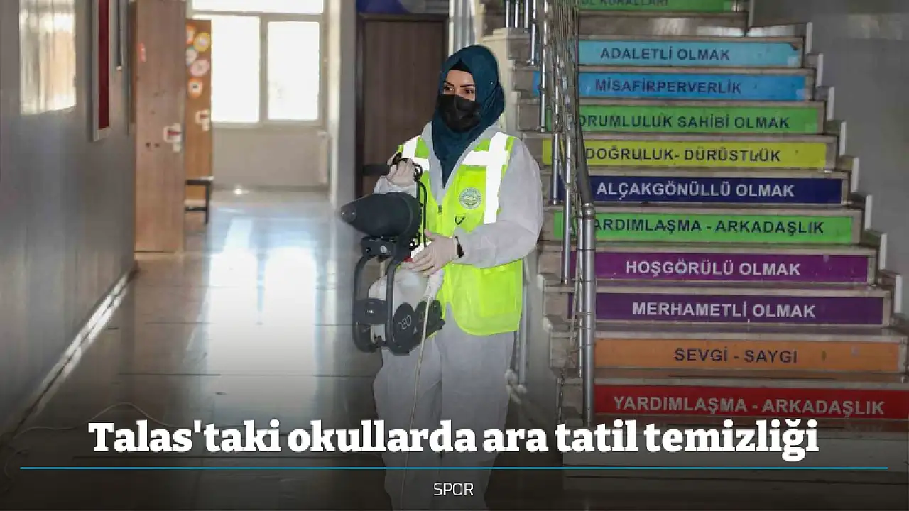 Talas genelindeki eğitim kurumlarının tatile girmesiyle birlikte kolları sıvayan Talas Belediyesi temizlik ekipleri; okulların kazan daireleri başta olmak üzere tuvaletler, lavabolar ve sınıflar ile koridorlarda dezenfekte ve hijyen çalışması gerçekleştiriyor. Talas Belediye Başkanı Mustafa Yalçın, konuyla ilgili yaptığı kısa açıklamada; "Geleceğimiz olan yavrularımızın daha sağlıklı ve temiz ortamda eğitim almalarını sağlamak amacıyla pürdikkat çalışıyoruz. Bu anlayışla, eğitim öğretim yılının başlamasıyla birlikte okullara yaptığımız temizlik faaliyetlerine hiç ara vermeden devam ediyoruz. Şimdi de ara tatille birlikte yine temizlik başta olmak üzere hijyen, dezenfeksiyon ve haşere ilaçlama çalışmalarına başladık" ifadelerini kullandı.