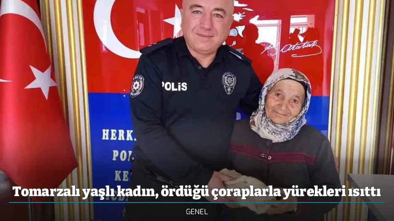 Kayseri'nin Tomarza ilçesinde yaşayan 71 yaşındaki Hanım Altıntaş, soğuk hava şartlarında nöbet tutan polislere elleriyle ördüğü çorapları hediye etti.