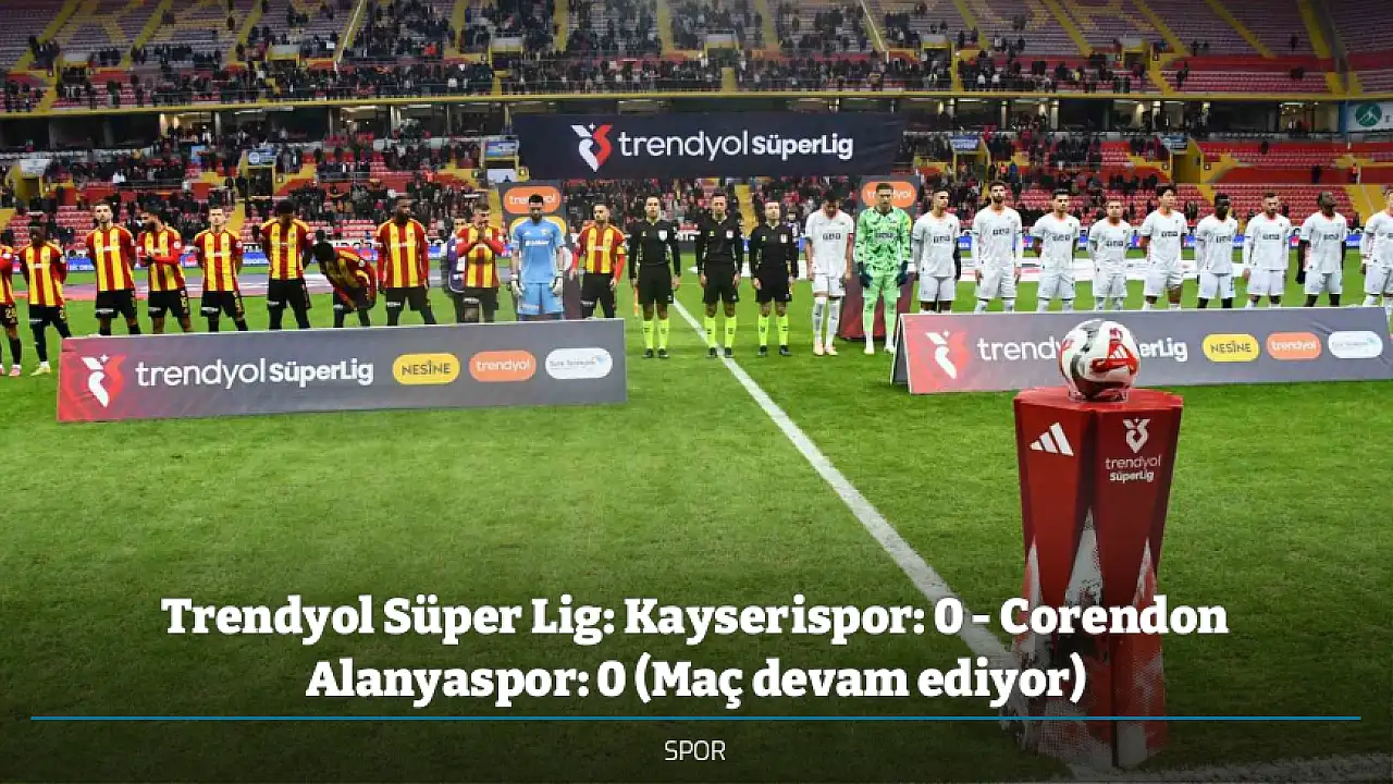 Trendyol Süper Lig'in 16. haftasında Kayserispor, evinde Corendon Alanyaspor ile karşılaşıyor. Müsabakanın ilk 15 dakikası golsüz eşitlikle tamamlandı.