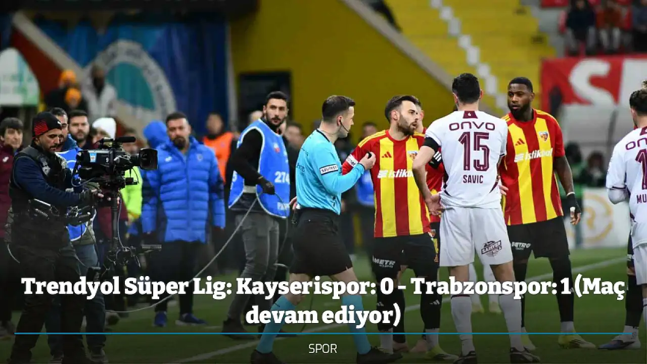 Trendyol Süper Lig'in 25. haftasında Kayserispor, sahasında Trabzonspor ile karşılaşıyor. Müsabakada 20 dakika golsüz eşitlikle geçildi.