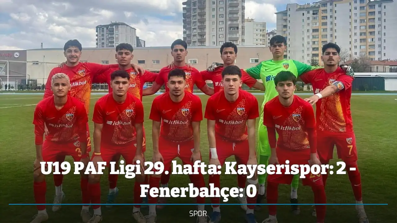 U19 PAF Ligi 29. haftasında Kayserispor, sahasında Fenerbahçe'yi konuk etti. 2 golün atıldığı maçı Kayserispor kazandı.
