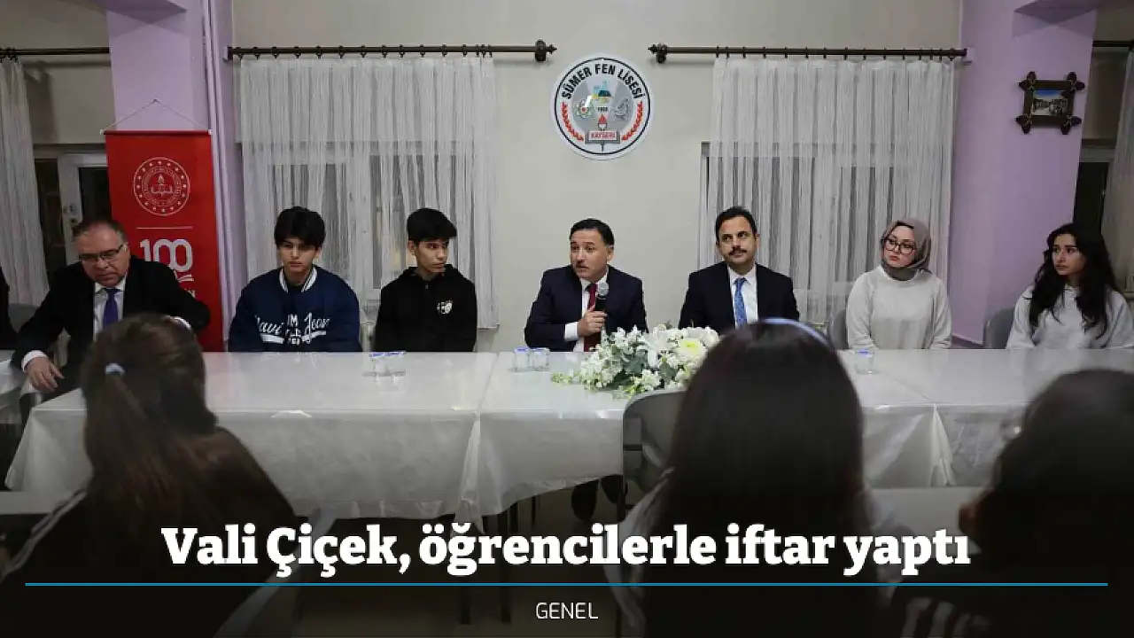 İftar öncesinde öğrencilerle birlikte yemek sırasına giren Vali Çiçek, aynı sofrayı paylaşarak gençlerle yakından sohbet etti. Programda konuşan Vali Çiçek, öğrencilerle bir arada olmaktan duyduğu memnuniyeti dile getirerek, "Kocasinan İlçesi Sümer Fen Lisesi pansiyonunda kalan kıymetli öğrencilerimizle iftar programında bir araya geldik. Aynı sofrayı paylaşmanın bereketini, gençlerimizin samimiyetini ve gözlerindeki umut ışığını hissettik. Her biri hayalleriyle, azmiyle ve çalışkanlığıyla yarınlarımızın teminatı" ifadelerini kullandı.