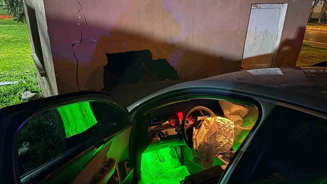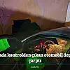 Yağışlı havada kontrolden çıkan otomobil depo duvarına çarptı