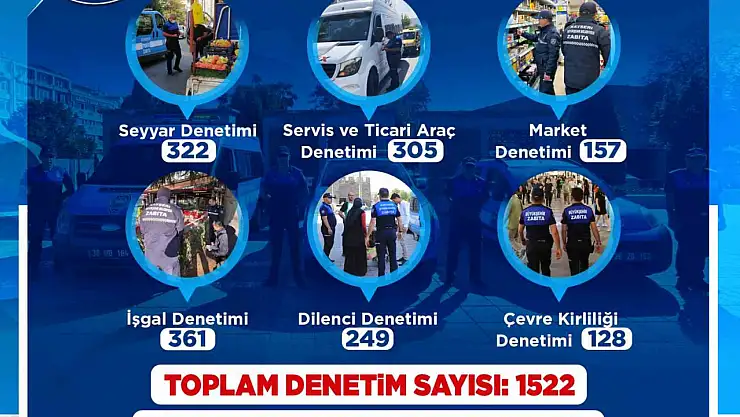 Büyükşehir Belediye Başkanı Dr. Memduh Büyükkılıç’ın özel önem verdiği ve kentteki önemli bir görevi yerine getiren Zabıta ekipleri, seyyar satıcı denetiminden servis ve ticari araç denetimine, market, dilenci denetiminden çevre kirliliği denetimine kadar şehrin düzeni, güvenliği, huzuru ve konforunu içeren alanlarda kontrollerini sürdürüyor. Buna göre Kayseri’deki denetim faaliyetleri kapsamında Kayseri Büyükşehir Belediyesi Zabıta Daire Başkanlığı birimi personeli, 322 seyyar satıcı, 305 servis ve ticari araç, 157 market, 361 işgal denetimi, 249 dilenci ve 128 çevre kirliliği denetimi olmak üzere toplam 1522 denetim gerçekleştirdi.